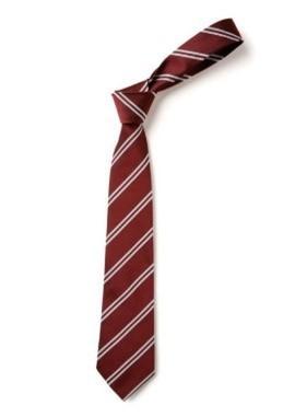 tie for children in KS2 only ('Double Stripe Tie’ in burgundy and white is a specific style of stripe, and is available from ‘Personalise’ in Witham)